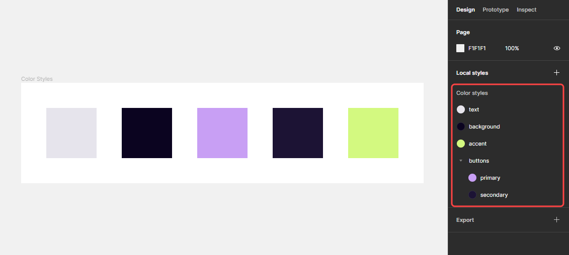 Once you have a palette, you can also see local color styles created automatically in the Figma file. Consider these color styles as reusable assets across your project.
